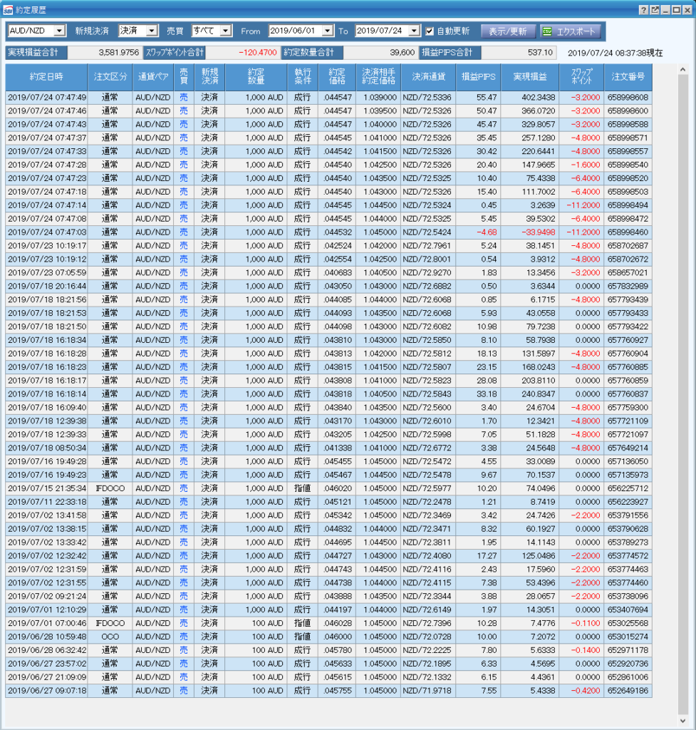 よく見ると、スワップでマイナスになるのがもう2つあるから 43勝3負 でした。