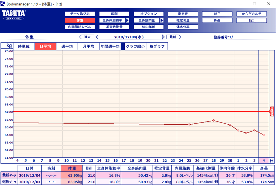 2019/11/30 65.25 Kg → 2019/12/4 63.85 Kg