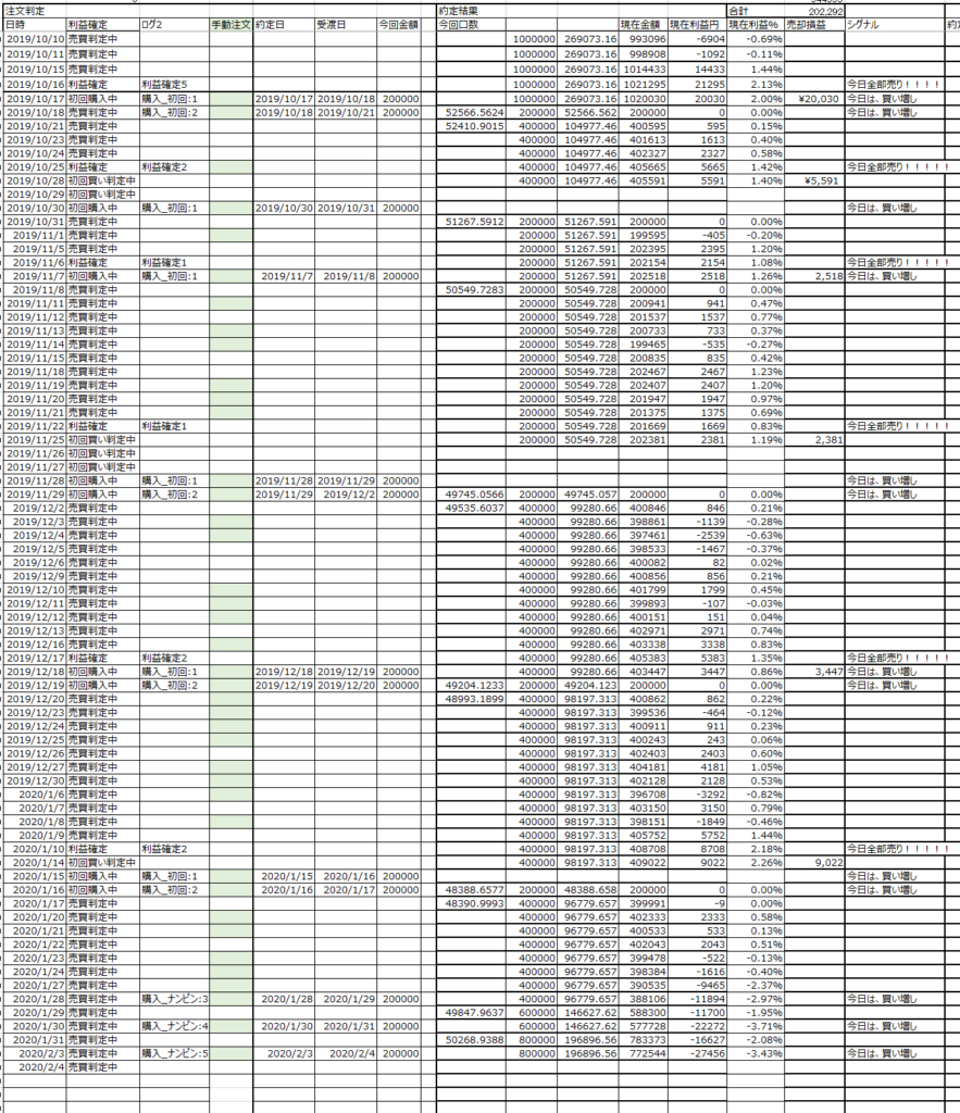 去年の10月以来、そろそろ日経平均さがるだろうと思い、買シグナルが出ても、買わずにスルーし続けているのだが、ツール通り買っていたらどんな結果だったのか、試しにやってみた。