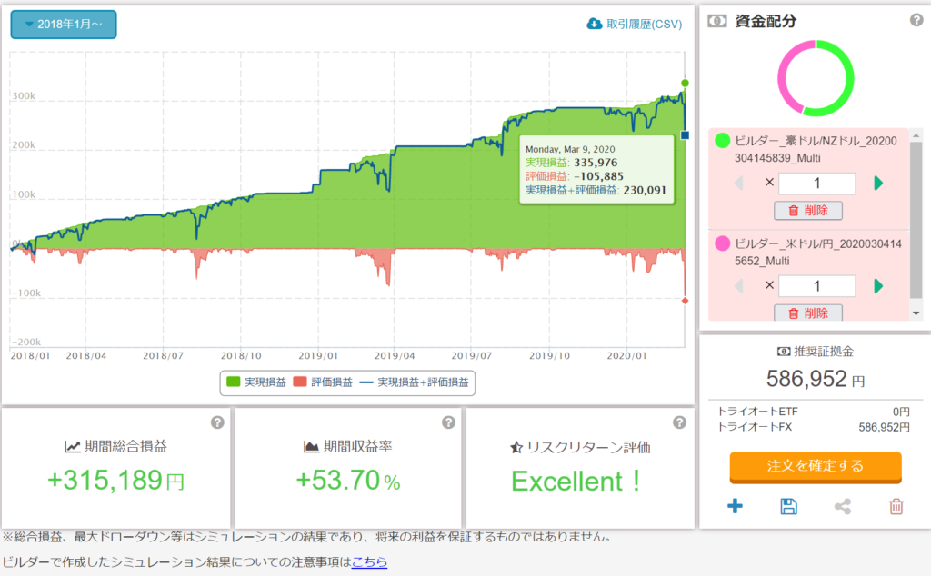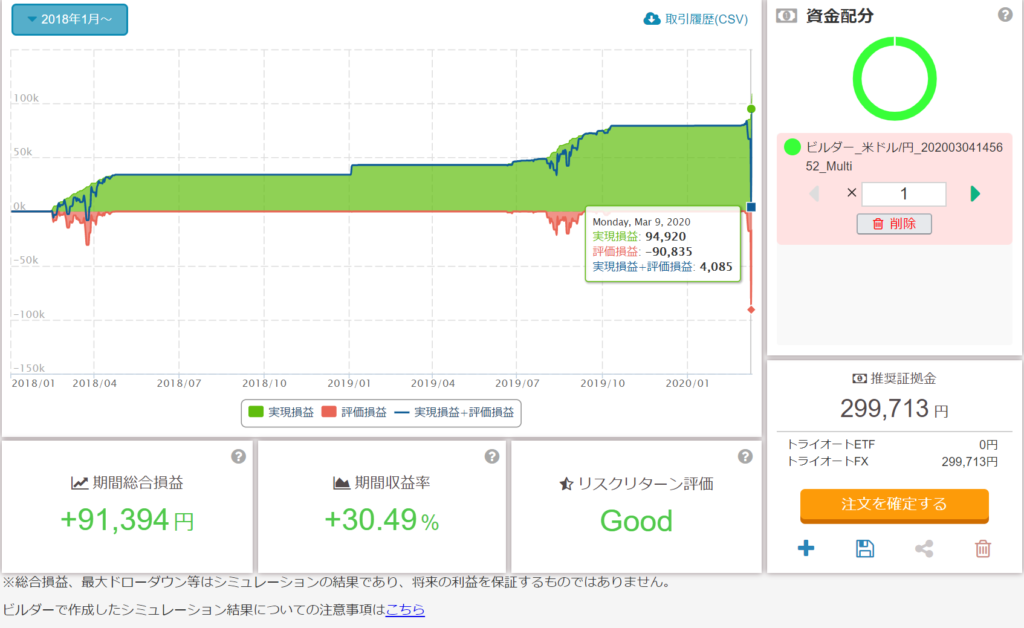 トライオート 自動売買 の口座状況 ( 2020/3/4 スタート)